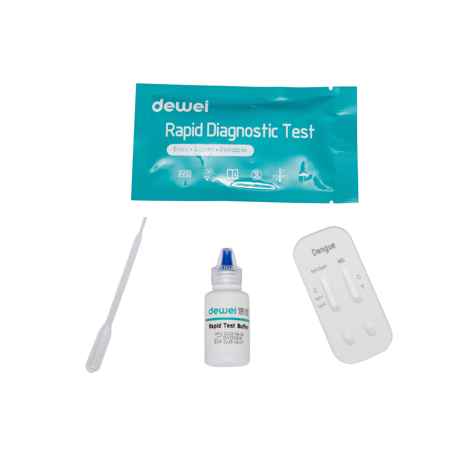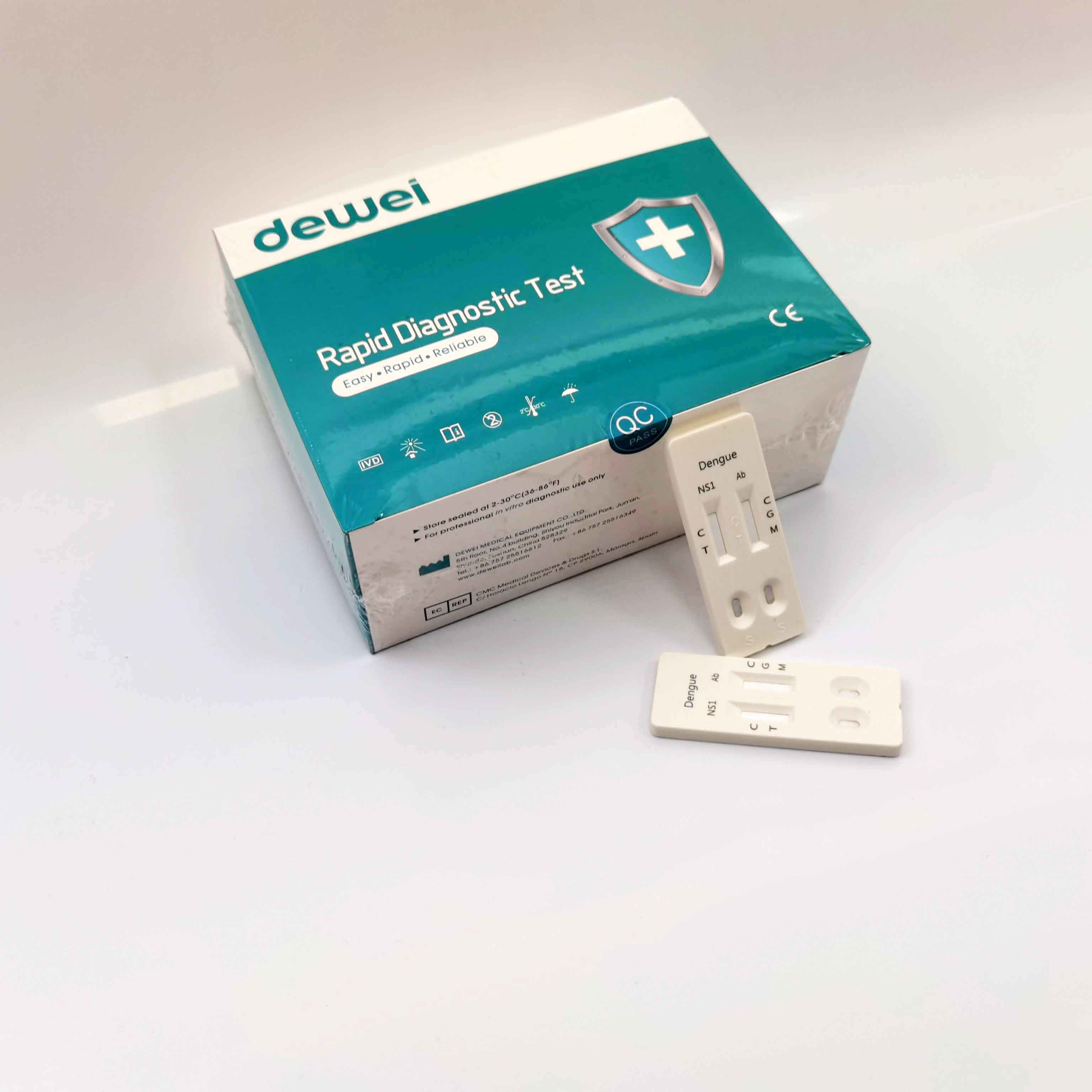 Esta prueba rápida de dengue está disponible como un casete de prueba inmunocromatográfica de captura de antígenos.muestras de plasma y/o sangre enteraLa prueba está destinada al uso profesional como herramienta para el diagnóstico de las infecciones por el virus del dengue.